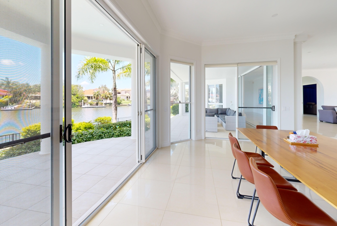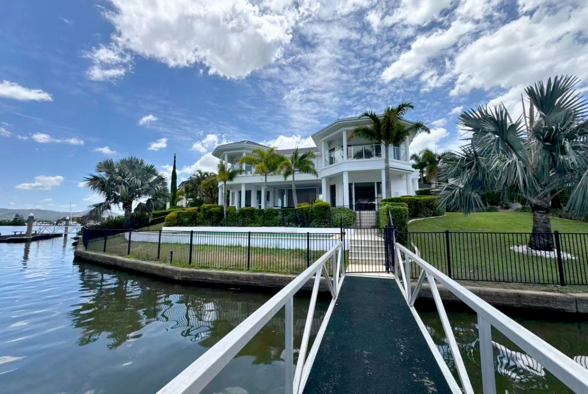 Nestled within the prestigious, security gated Hope Island Resort, this rare 1,309m² absolute waterfront allotment spans an impressive approximately 655m² of bespoke living. 2331 Cressbrook Drive transcends the ordinary, offering a masterfully curated lifestyle of luxury, leisure, and absolute privacy. From its grand arrival to its exceptional seafaring privilege, every facet of this residence is designed for the most discerning.