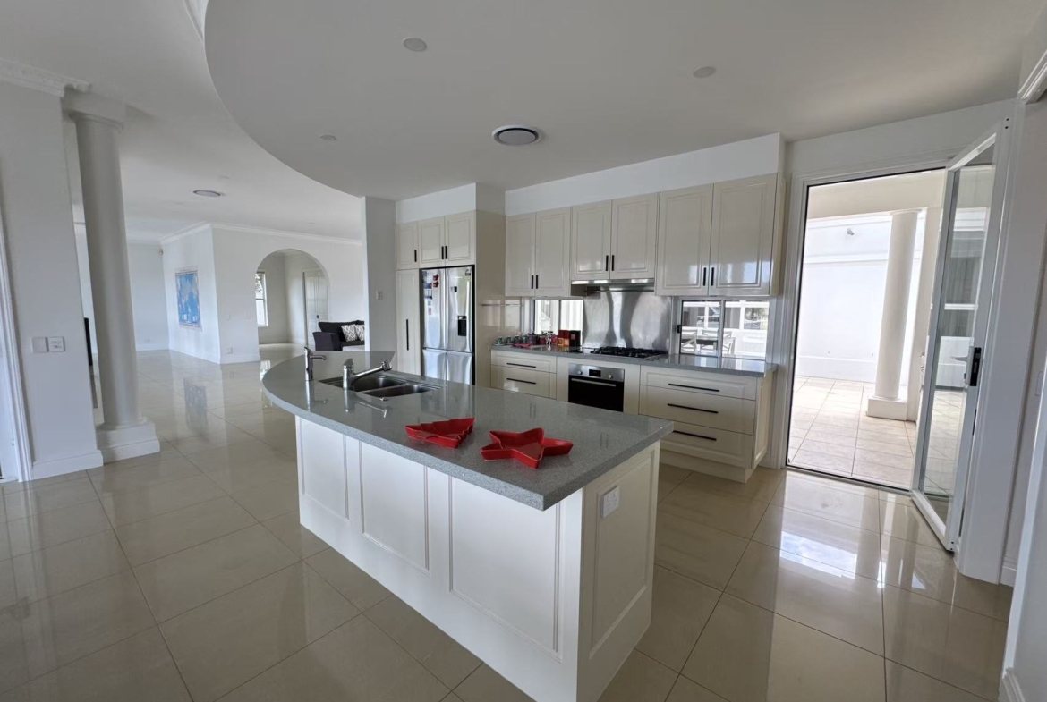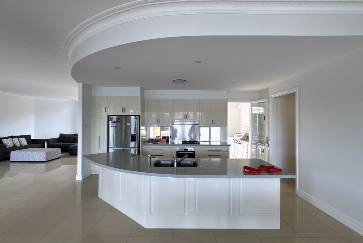 The gourmet kitchen, equipped with premium European Miele appliances, stone benchtops, and a walk-in pantry, serves as the true heart of the home. A secure triple garage provides ample space for vehicles and storage.