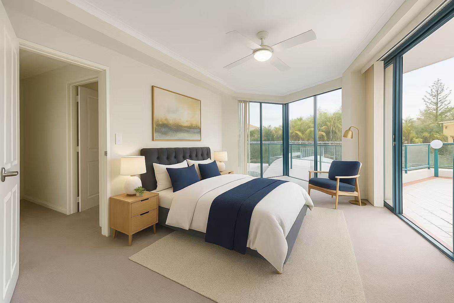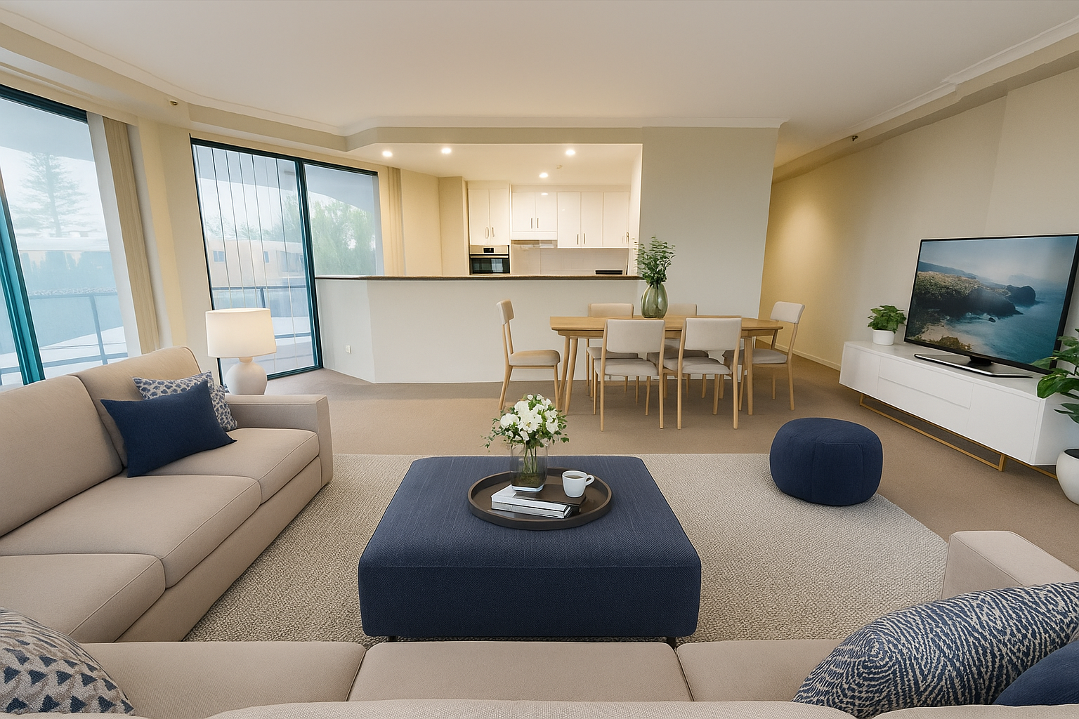 – Open-plan living with full-length windows capturing natural light and sweeping views
